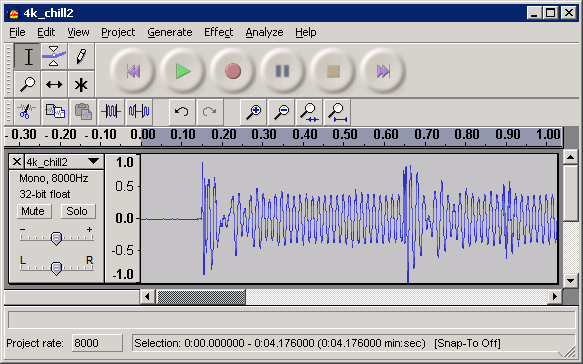 Unfortunately, when the audio was looped, it just didn't sound right. The trouble is, within MP3 files, the audio is split into frames. Using a useful utility from codeproject, I found that my MP3 file consisted of 56 frames of ~67ms in length. However, the audio loop was not a multiple of 67ms. To rectify this, I downloaded a copy of the free audio editor Audacity, and 'stretched' the track to fit into an integer number of frames, and re-encoded in MP3 format via lame. Finally, I had looping MP3 audio! (and 4,958 bytes left)