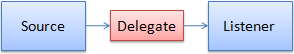 By subscribing to an event the following relationships are constructed, with the direction of reference as indicated: