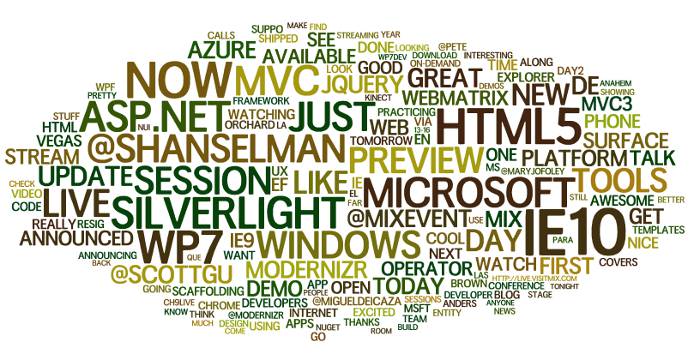 The annual MIX conference, where Microsoft showcases the latest and greatest technologies to the development community is now coming to an end. For many, the highpoints of the event are the keynote presentations, where Microsoft unveils their latest tools and technology. The keynotes are broadcast live across the internet and are followed by thousands of developers online as well as at the conference centre in Vegas. Unfortunately the keynotes both fell at a time when I was traveling home from work so I could not watch them live. However, I was able to follow the amazing buzz on twitter via the #mix11 hashtag.