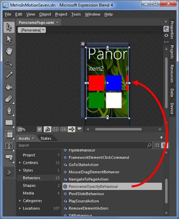 </controls:Panorama>Or applied by drag and drop within Expression Blend:
