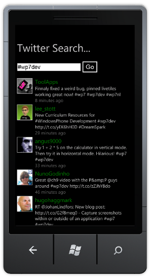 The application I have built to demonstrate tombstoning is a very simple, single page twitter search application.