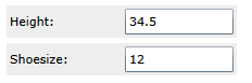 }This produces the expected behaviour, a label and a text field that allows you to edit the Shoesize property: