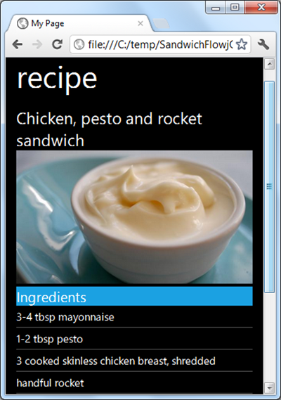 Now there isn't really a suitable jQM UI for the ingredients list, so I styled these directly: