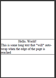 As can be seen, one of the drawbacks of PdfSharp is that features such as text-wrapping are not implemented. To achieve text wrapping one must manually measure the lengths of strings and wrap the text accordingly. Furthermore, the current document y position must also be tracked as rendering is performed. In this simple example tracking the y position is trivial, although rendering does become slightly more challenging when more complex rendering is performed (e.g. drawing a custom table of data).