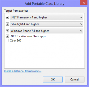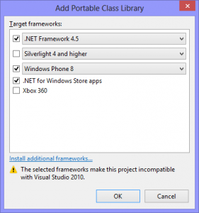 Another feature added with VS2012 is the portable class library. This allows creation of an assembly targeting multiple .NET platforms, making use of the subset of functionality common to both (with some fancy type forwarding mapping features that are present in different guises).