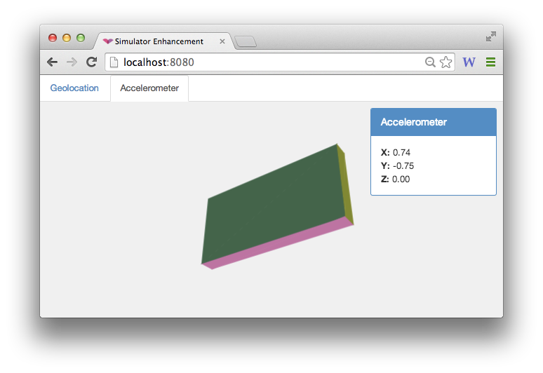 If you have written an app that uses accelerometer input, you will no doubt have encountered the issue that the iOS simulator reports a reading of (0.0, 0.0, 0.0), no matter which angle you hold your MacBook! Your only route to testing this type of app is to use a physical device.