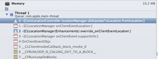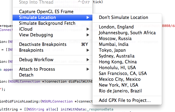 I’ll look at where the simulated location data comes from shortly. In the meantime, the final thing I discovered was that while I was able to simulate my own location ‘events’, the delegate was still being called with the ‘real’ locations.