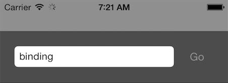 self.viewModel.searchCommand.executing;I’ve even thrown in a few little extras like hiding the keyboard when the ‘go’ button is pressed, and binding the network activity indicator to the searchCommand.executing signal.