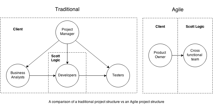 Whilst this approach would usually start prior to the start of an engagement, it is something that teams within Scott Logic have taken on midway through an engagement as well. This depends on a client not being keen on Agile initially, but having a change of heart part way through the project.