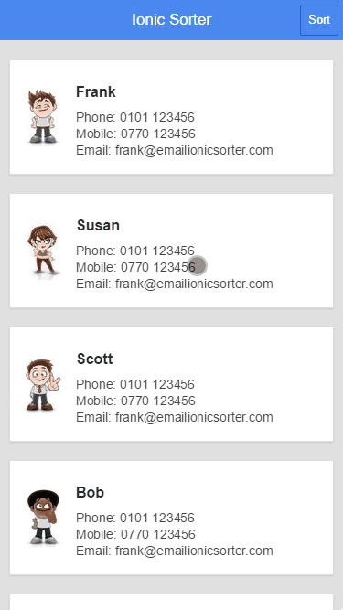 For the purpose of this blog article, I’ve built a simple Ionic application with a sortable list. The full project is available on GitHub. Note that this project also uses jQuery to make a few things a bit easier, but it should be possible to eliminate jQuery if required.