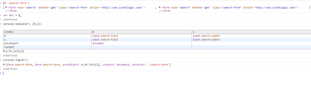 The third way is to use inspect(object) which is particularly useful if there are quite a few of that element and you want to inspect a specific one ie. inspect($$(‘a’)[4])