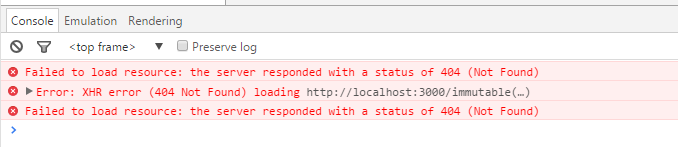 ]);If you update the build to copy the immutable library to the dist/lib folder then run the application … it doesn’t work: