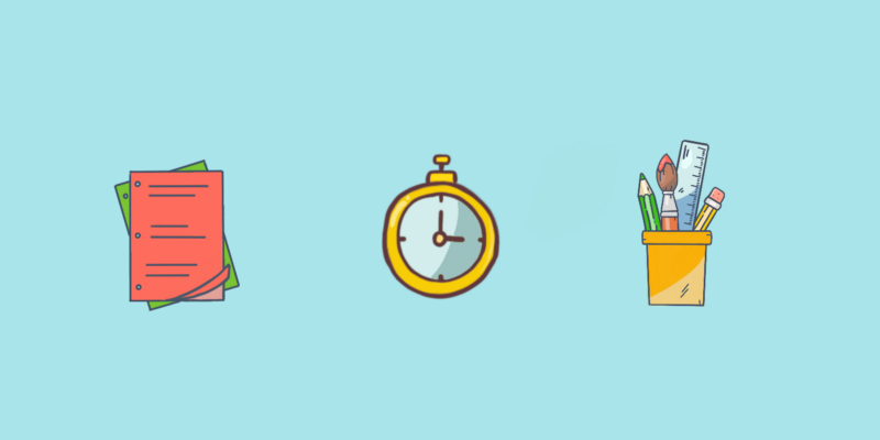 Let’s get started! All you’ll need is a timer, sharpie, fine pen, pencil, eraser and paper. The sharpie can be used for structural aspects of the sketch like the border to frame your designs. The pencil should be used for shading and drop shadows. While a fine pen is needed for smaller details such as text or images drawn.